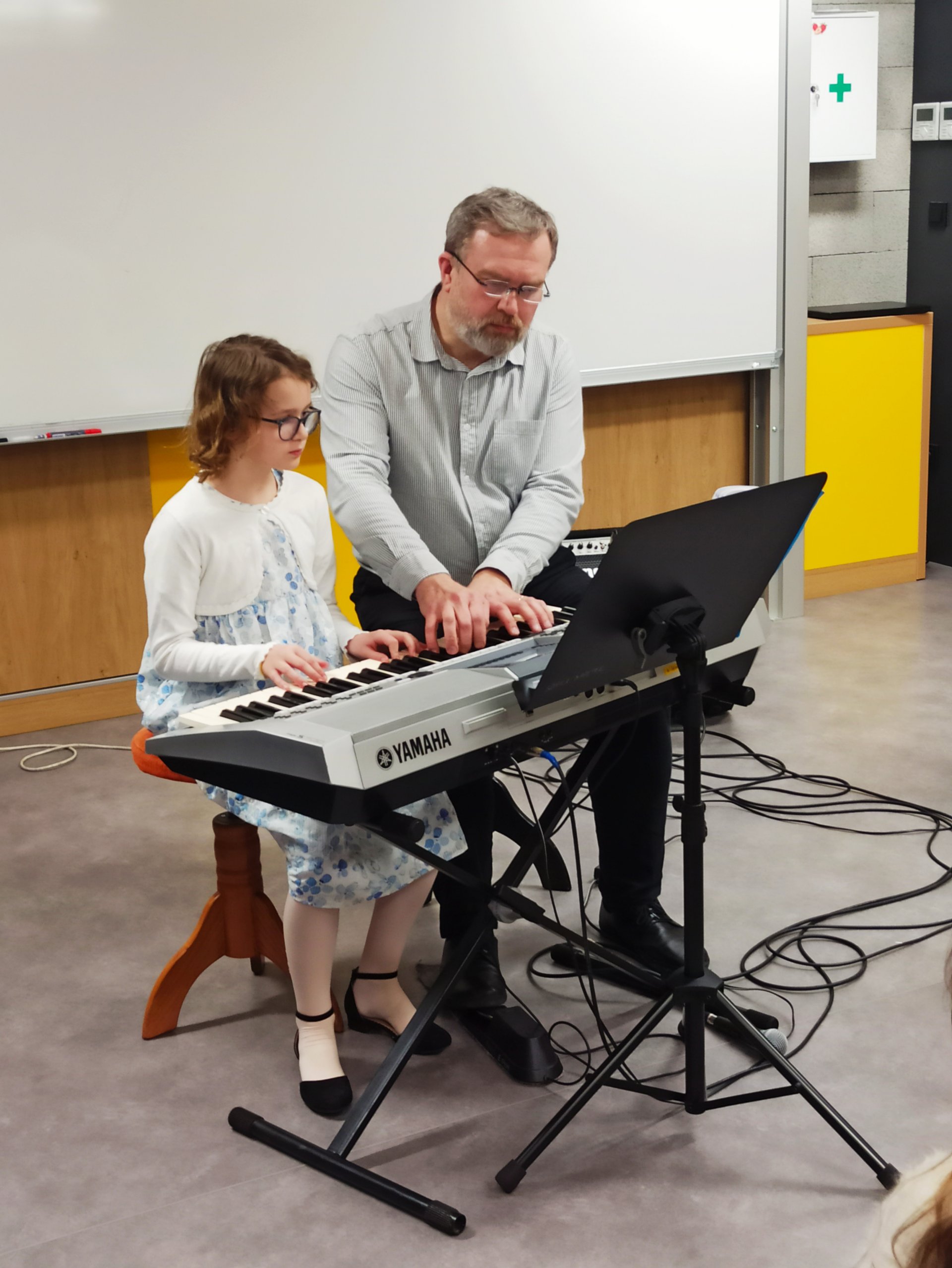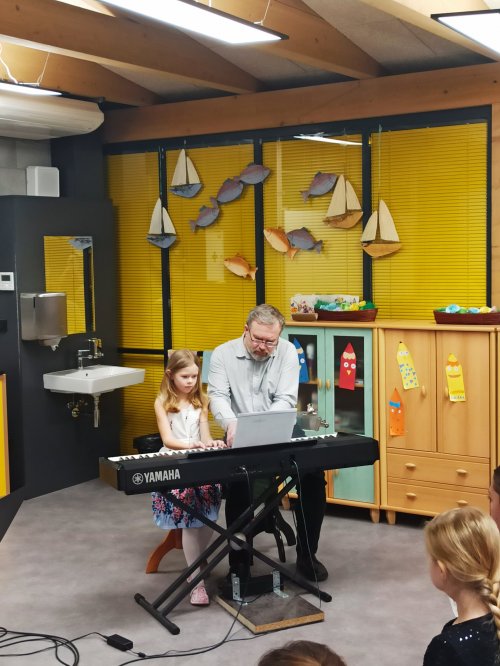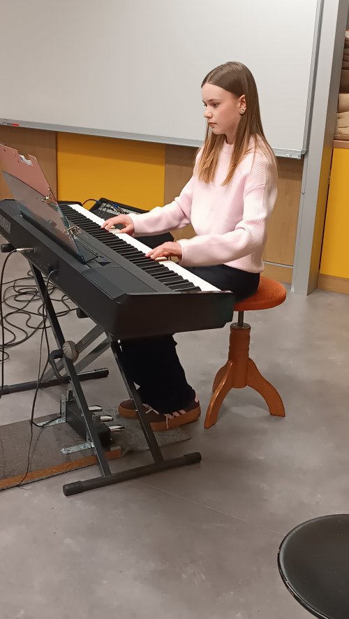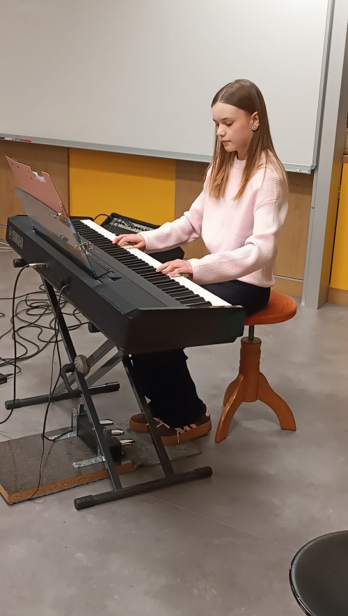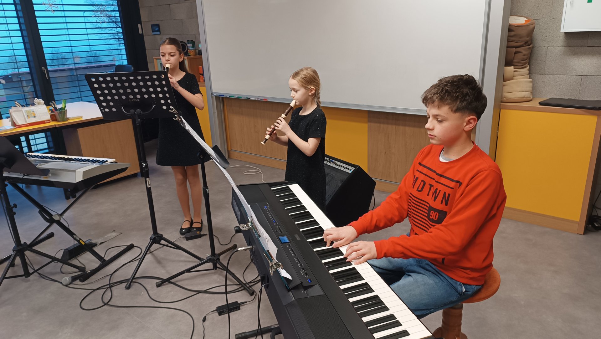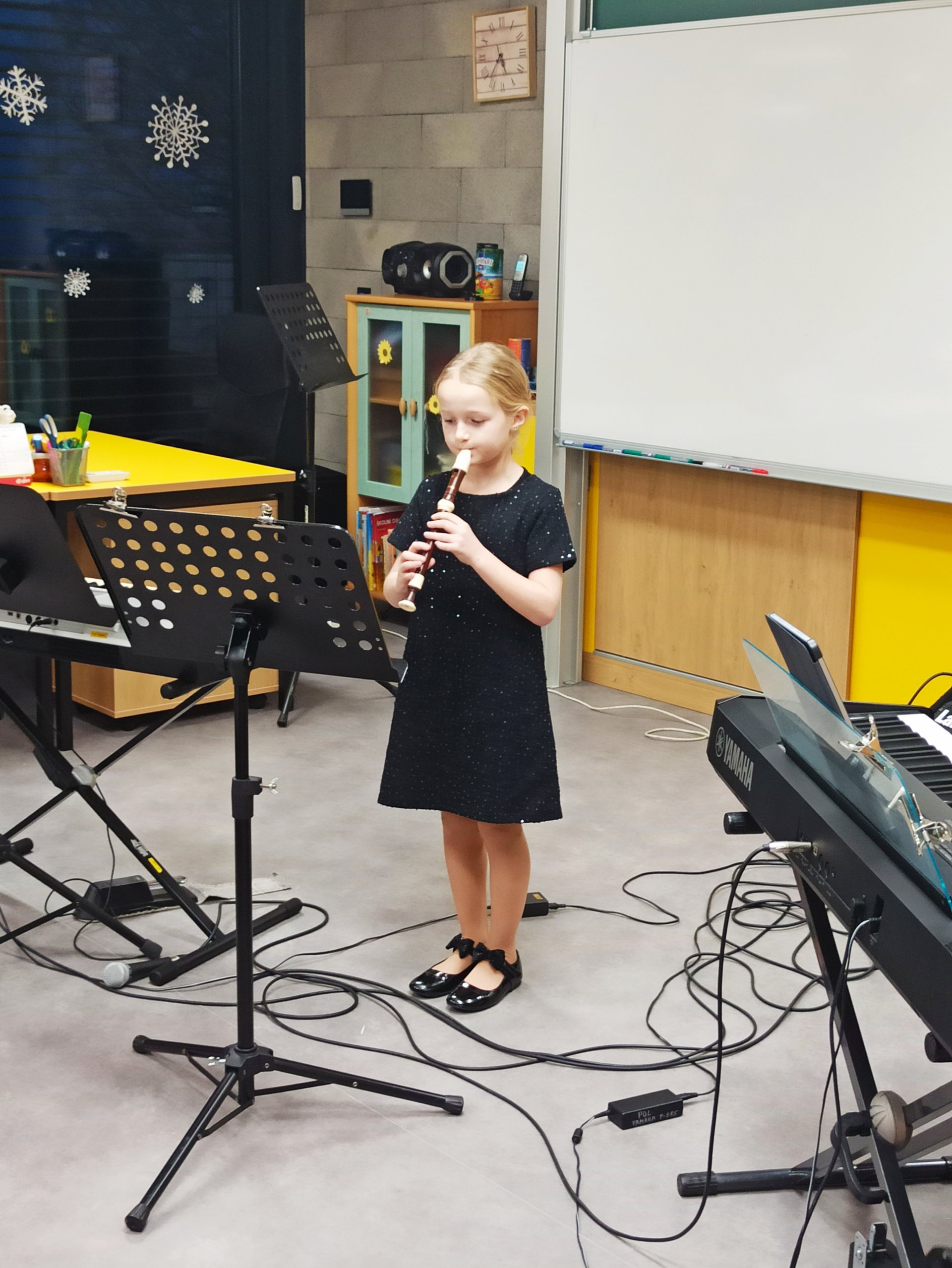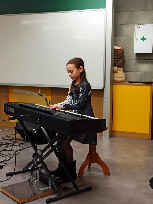Mezi barevnými nástěnkami a dětskými výkresy vznikl prostor, kde se i bez velkého pódia rozezněla hudba a mladí muzikanti předvedli své dovednosti.