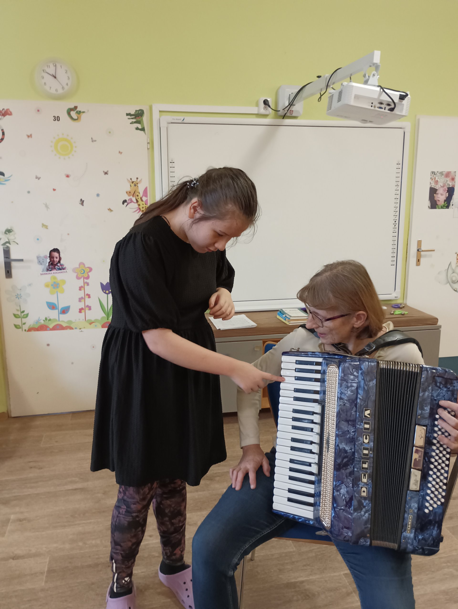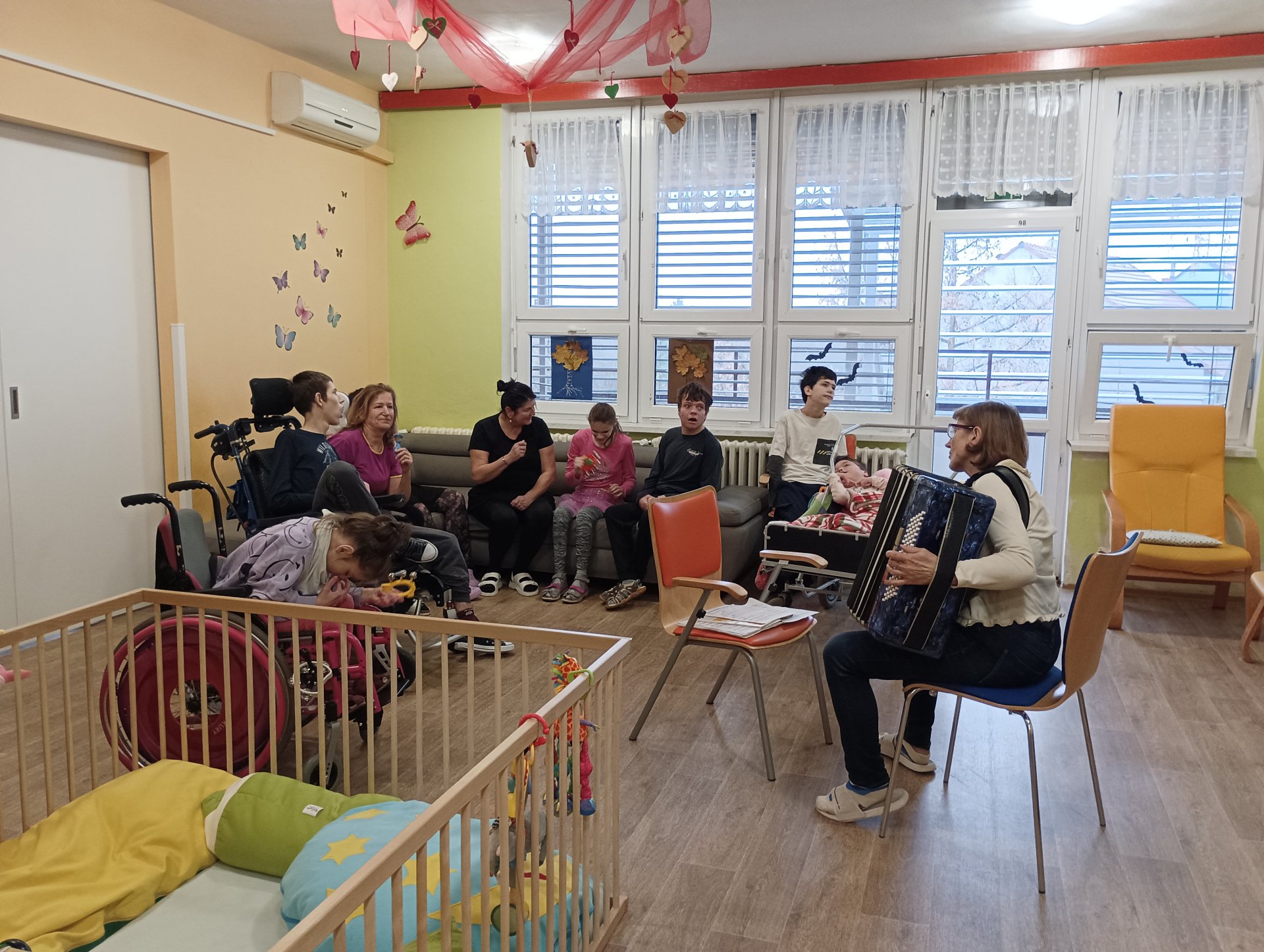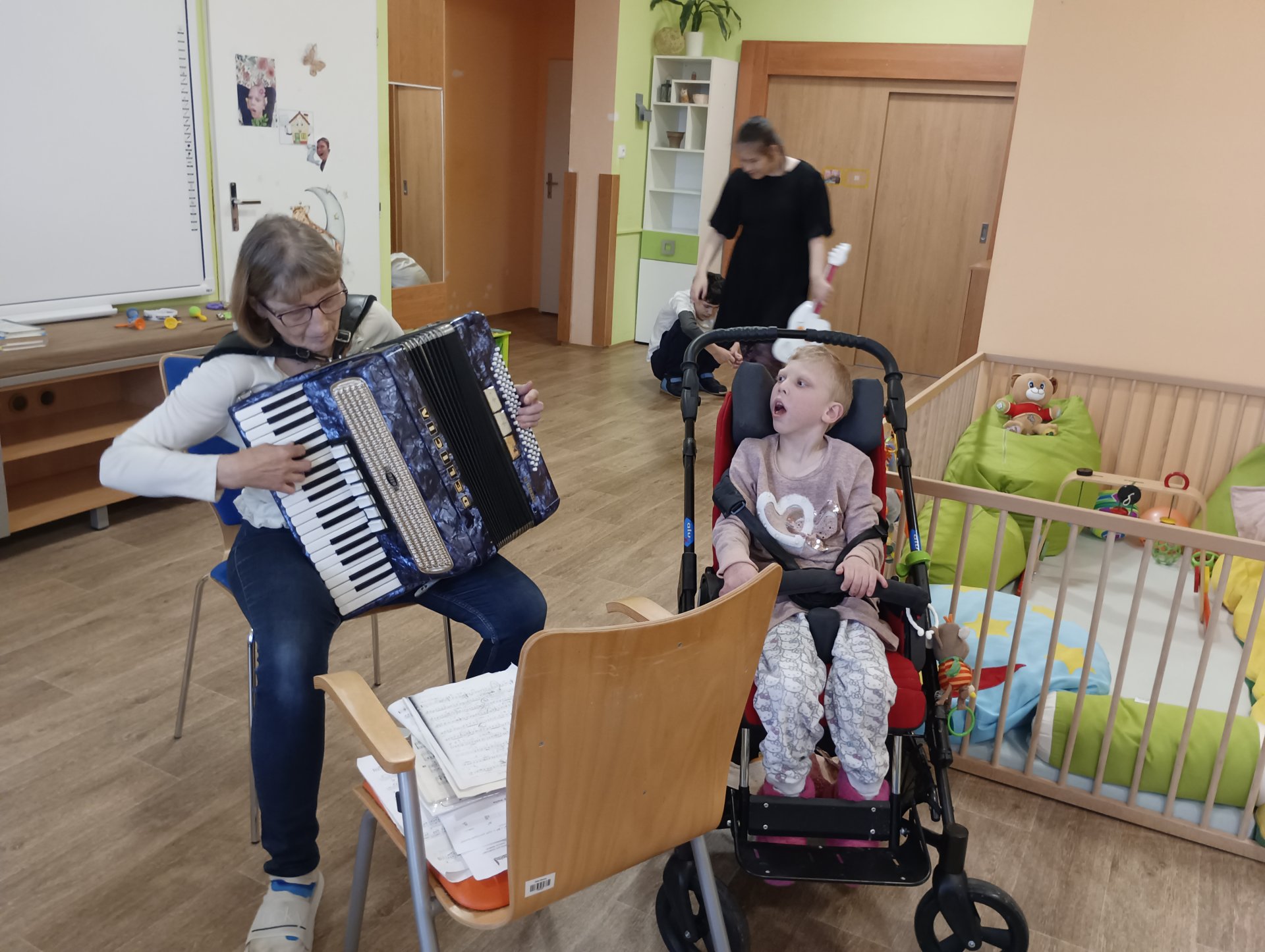 Pedagožka naší školy Jitka Slivečková (hra na akordeon a EKN) strávila jeden velmi krásný a citlivý podvečer v Odlehčovací službě Kunovice - Na Bělince, kde svou hrou potěšila děti i jejich pečující.