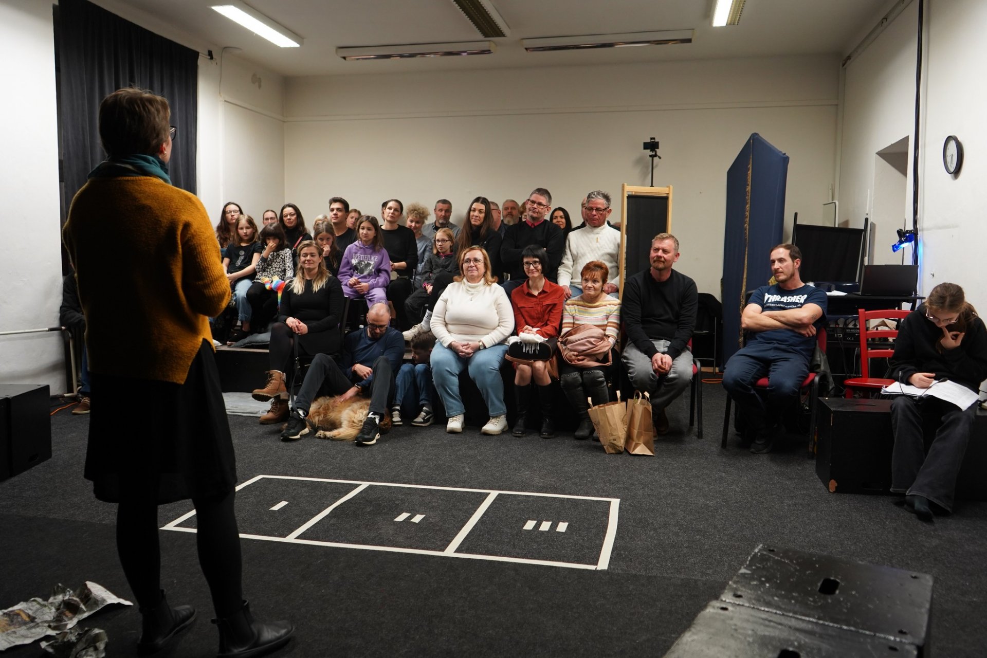 Po celodenním soustředění odehrála v neděli večer skupina Ea9T, pod vedením Elišky Martincové, premiéru inscenace Lajka, dle vlastní úpravy stejnojmenného textu Davida Košťáka.