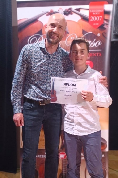 Žák kytarového oddělení Matěj Crkva získal v Mostě čestné uznání 1. stupně v celostátním kole v soutěži ve hře na kytaru v konkurenci s dalšími 12ti žáky ve stejné kategorii.