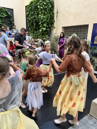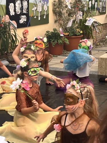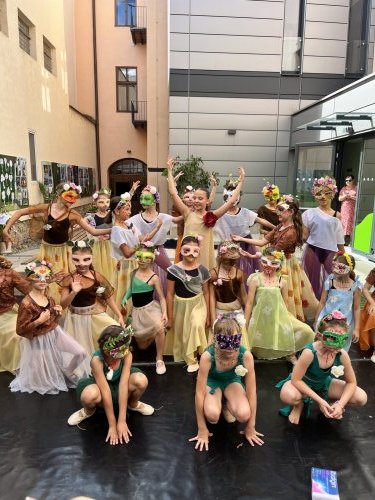 Následovala Letní taneční škola, pod vedením Kristýny Bystroňové, Bohdany Špalkové a Markéty Šebkové děti kašírovaly masky, navlékaly korálky, tvořily plakáty a hlavně tančily. Díky všem těmto přípravám a celotýdennímu úsilí se Zahrada umění a hudby stala dějištěm Divotvorné taneční zahrady, působivého tanečního představení pro rodiče.
