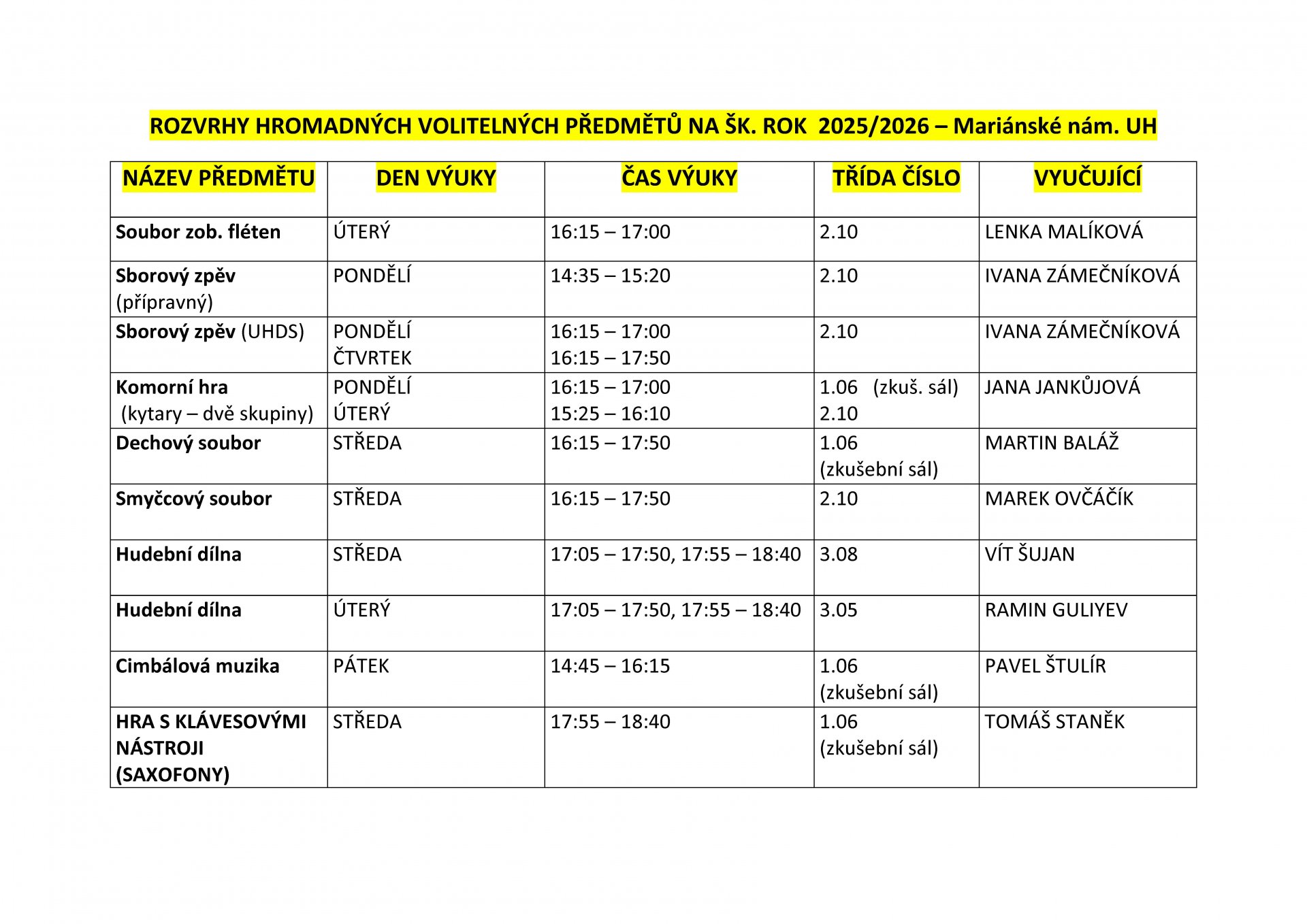 MARIÁNSKÉ NÁMĚSTÍ, UHERSKÉ HRADIŠTĚ ŠKOLNÍ ROK 2025 - 2026